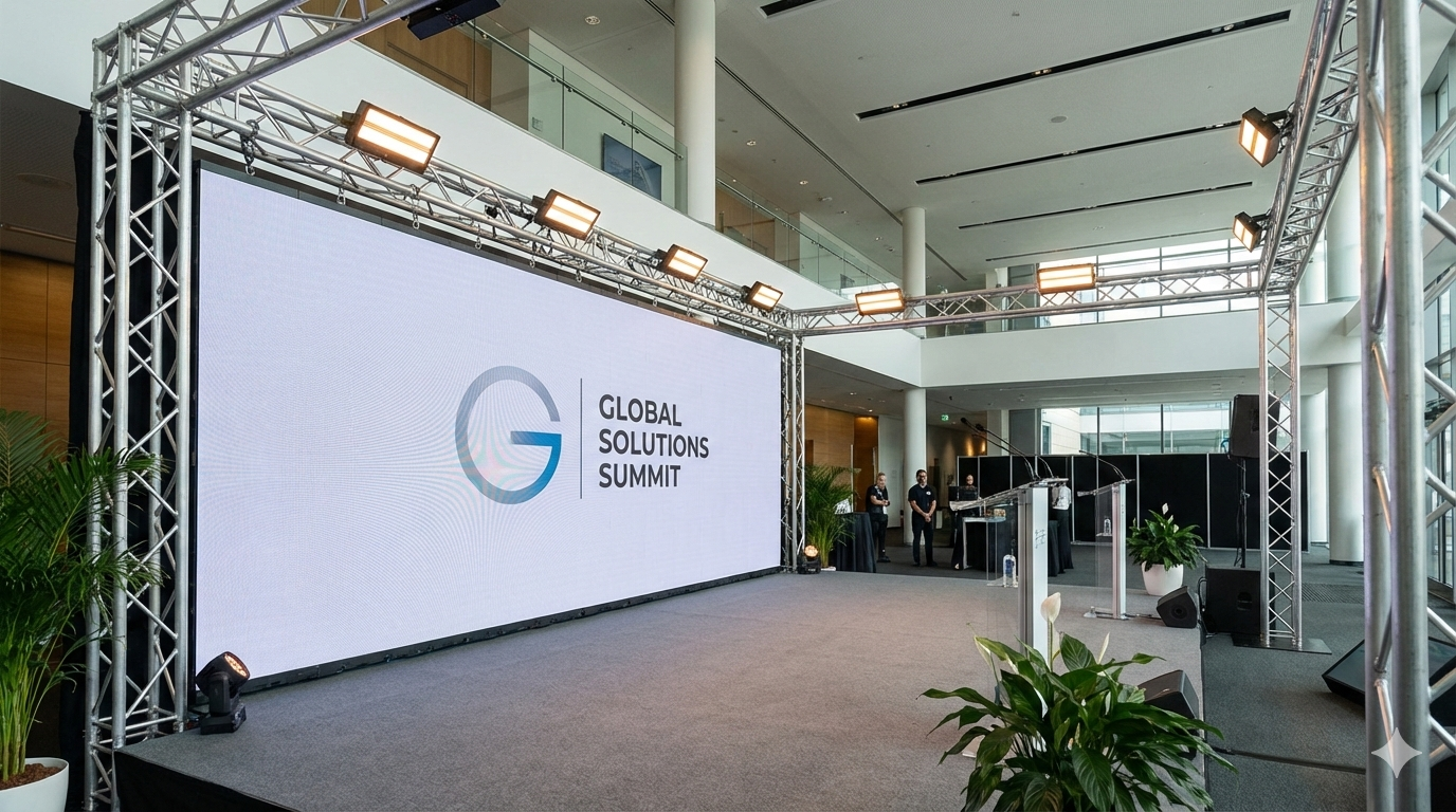 نقدم خدمات متكاملة من شاشات وصوتيات إلى استيج مضي وتجهيزات VIP.